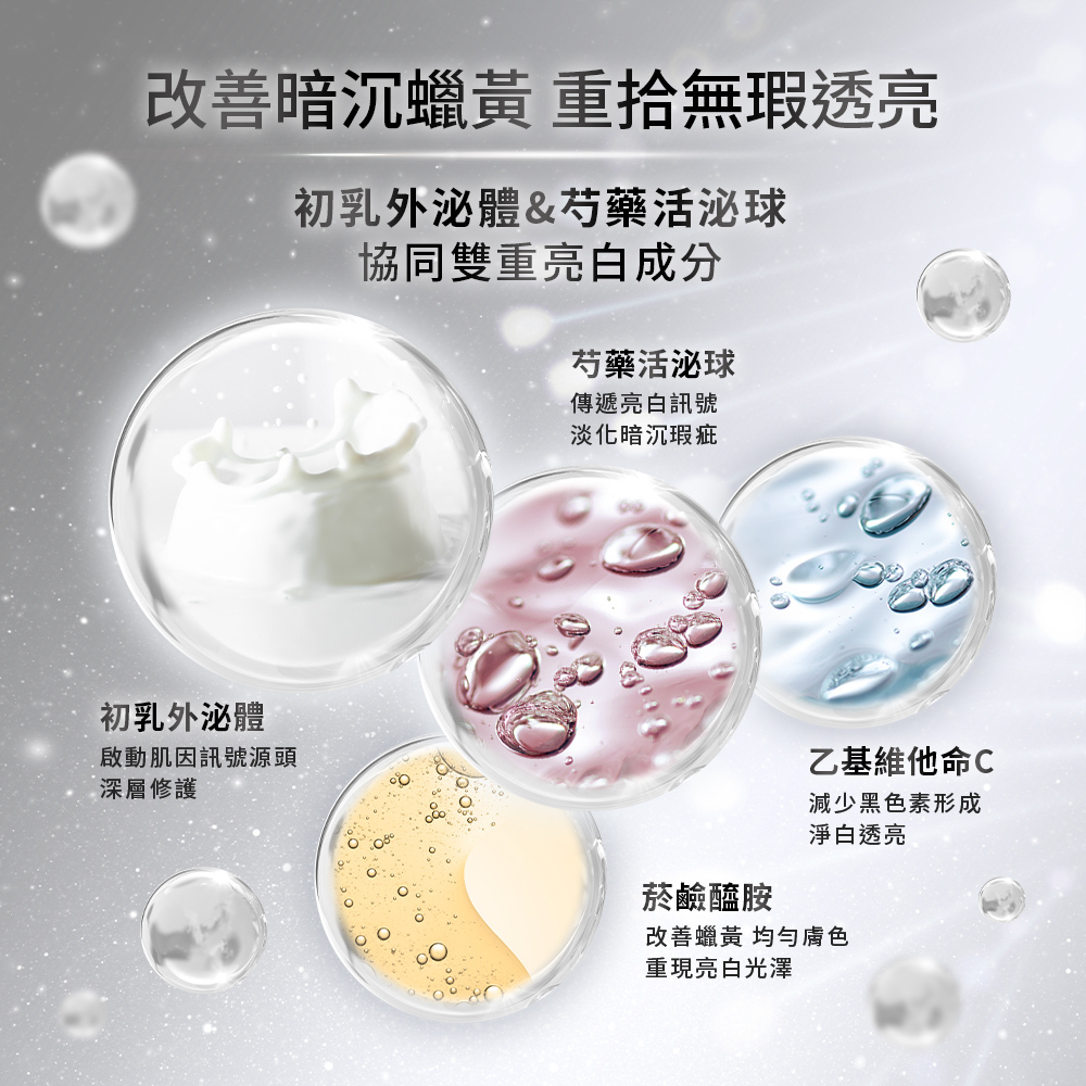 ◎ 菸鹼醯胺,改善蠟黃,均勻膚色,重現亮白光澤。