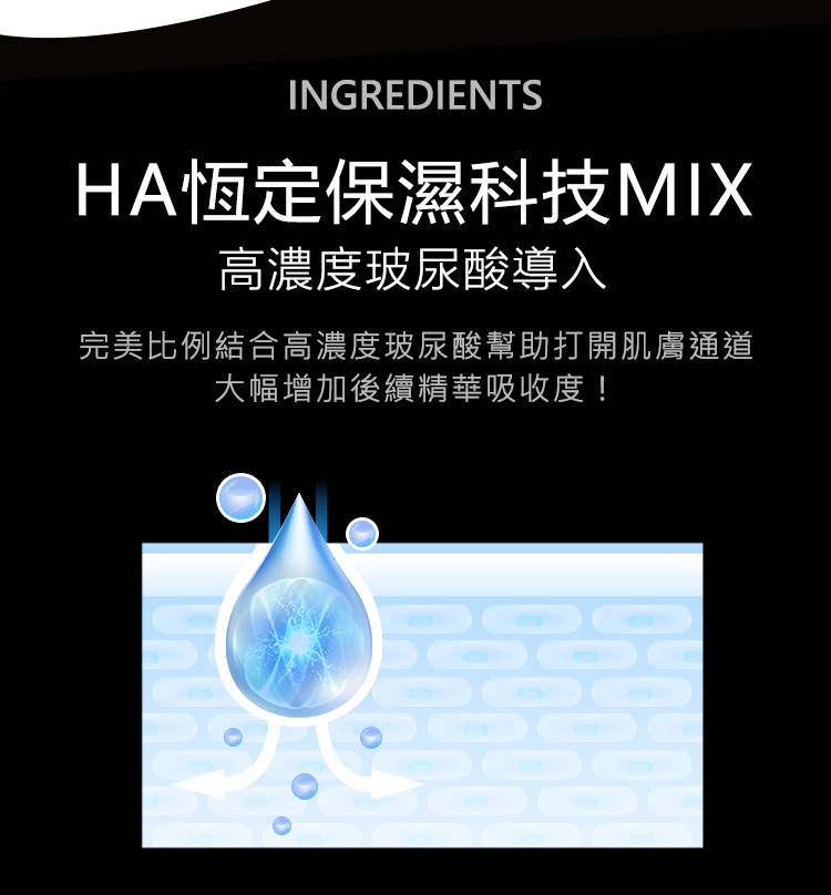 ◎ HA恆定保濕科技MIX,有效增加吸收度29.6%